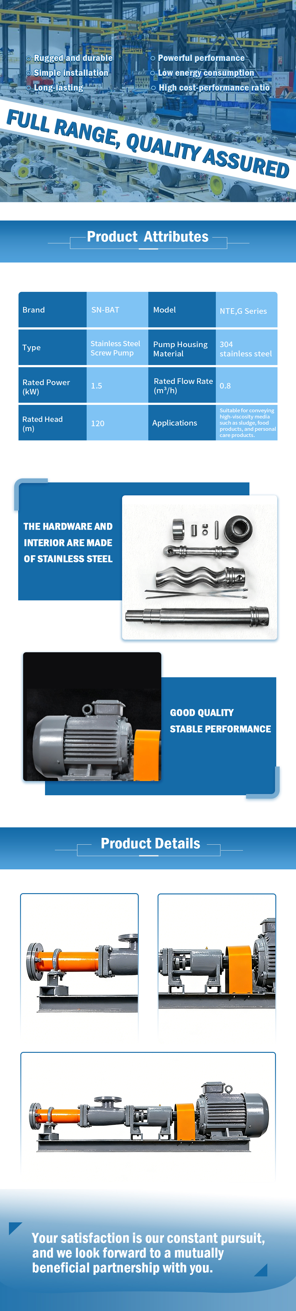Bomba de parafuso em aço inoxidável
